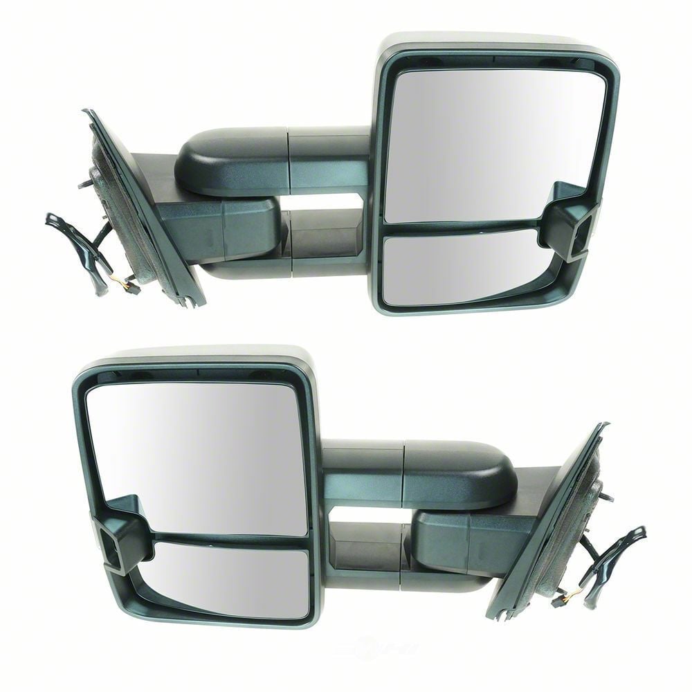 Installation. The installation of the Manual Towing Mirrors with Turn Signals replaces factory side mirrors, bolts to existing points on the door, and minor electrical connections for turn signals, and no drilling is required. The process can be accomplished by anyone with moderate mechanical skills, making this product accessible to professional mechanics and experienced DIY enthusiasts.