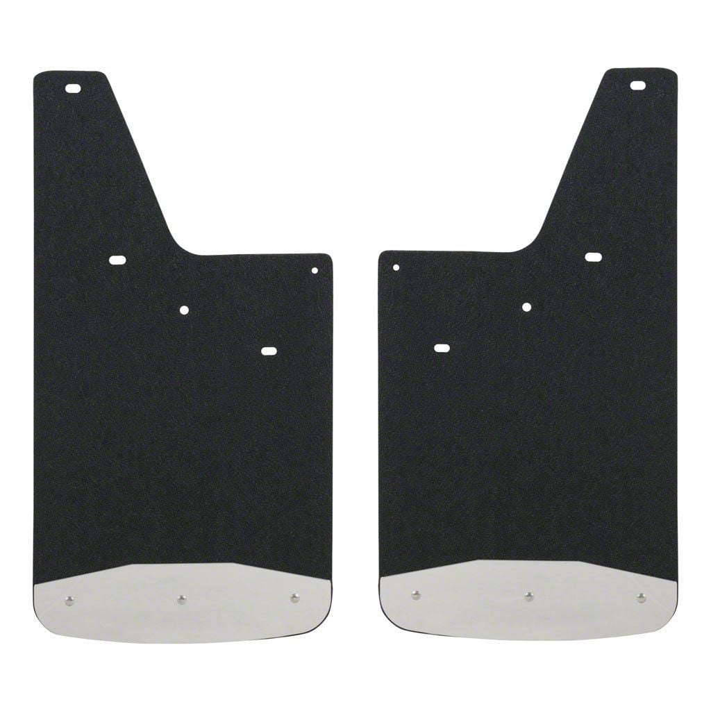 Get in Your Truck with Ease. Keep rocks and other off-road obstacles from hitting your body paint and interior with the this Textured Rubber Front or Rear Mud Guards - 12 Inch x 23 Inch. This pair of mud guards measures 12 inches by 23 inches each, featuring polished 18-gauge stainless steel plates high-strength steel brackets for extra support.