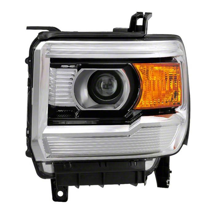 Better Light Styling. Upgrade your Sierra with the OEM Style Headlight; Chrome Housing; Clear Lens; Driver Side and enjoy improved visibility and a refreshed front-end appearance. Equipped with a clear lens, this headlight delivers optimal light output for improved visibility on the road. The clear lens ensures maximum light transmission, allowing you to see clearly in various driving conditions.