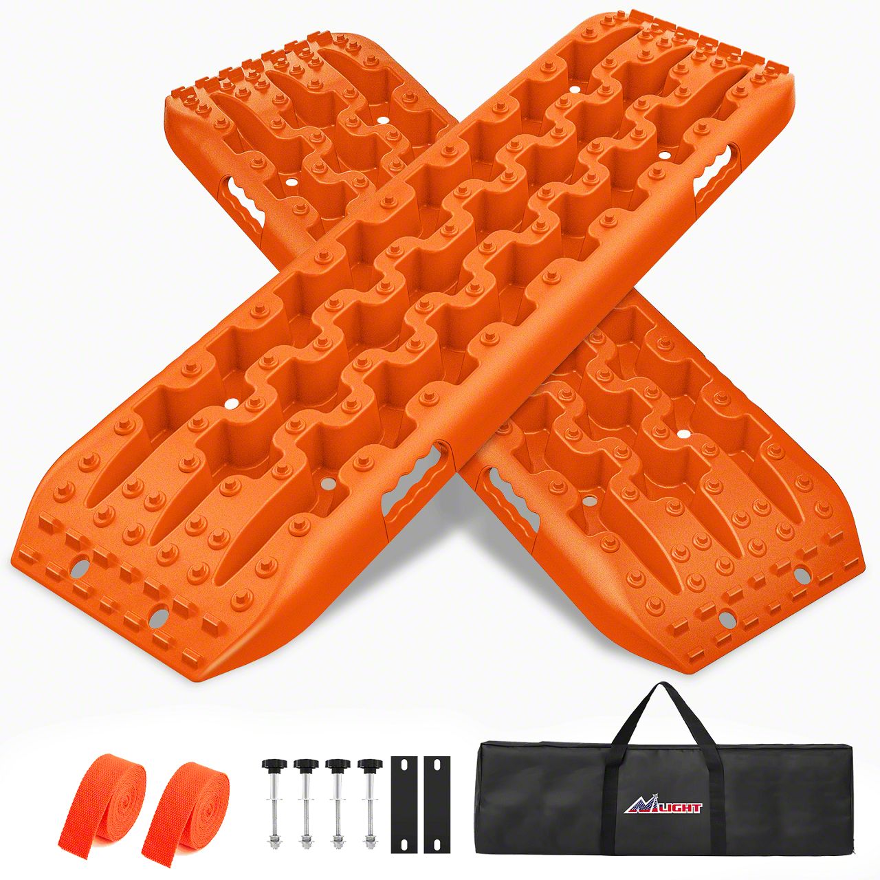Nilight Recovery Off-road Traction Boards Emergency Tire Mats For 4WD 4X4 Mud Sand Snow with 2PCS Mounting kit Zipper Bag 2 leashes (Orange)