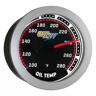 GlowShift’s Tinted Gauge Series has been revamped from our previous gauge model in both performance and style. Each electronic Tinted Series Gauge is driven by Stepper Motor Technology that allows for smooth and stable needle movement with instant feedback from the electronic temperature sensor. Each 2 1/16” (52mm) gauge face features an illuminated red needle that sweeps 270 degrees at startup with white LED backlighting. Connecting this gauge to your factory headlight switch allows it to dim 30% for easier monitoring during the nighttime. This oil temperature gauge is housed in a two tone gun metal gauge body with a brushed aluminum trim ring and a low profile, magnified tinted lens. Each Tinted Series Gauge features modular connections for plug and play connectivity, as well as all the necessary mounting hardware, installation instructions, free lifetime technical support and a one year limited warranty.