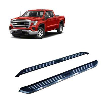 Aluminum and Stainless Steel-Made. Crafted from durable aluminum, they offer excellent strength and durability while remaining lightweight. The running boards are coated with an E-Coat primer and a powder-coated finish, ensuring resistance against rust and corrosion. With stainless steel side trim and tread inserts, these running boards not only enhance the overall aesthetics but also provide additional grip and traction.