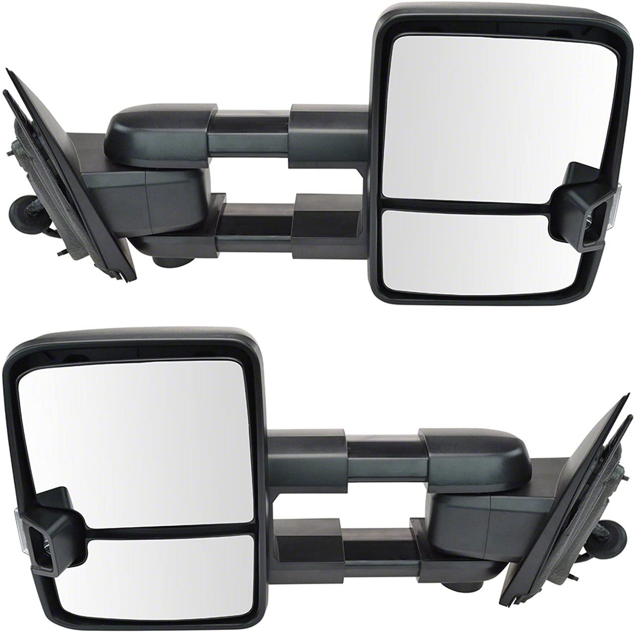 Durable ABS Construction. These Towing Mirrors are manufactured from an OEM quality acrylonitrile butadiene styrene (ABS) material. ABS is known for its light weight, superior durability and impact resistance, making it the ideal material for use on and off road. These Mirrors are completed in an OE style black textured finish that matches your truck's existing factory trim.