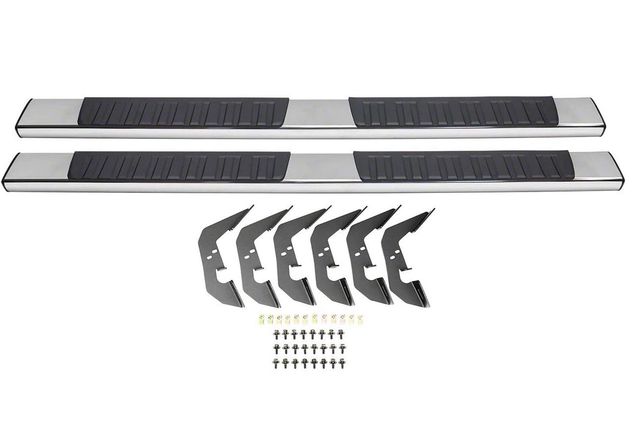 Stainless Steel Construction. These R7 Nerf Side Step Bars are manufactured from heavy duty stainless steel for superior strength and rigidity. The Side Steps are then completed in a bright, mirror polished finish for good looks and long lasting corrosion resistance. As part of the final assembly a set of rugged non-slip step pads are installed.