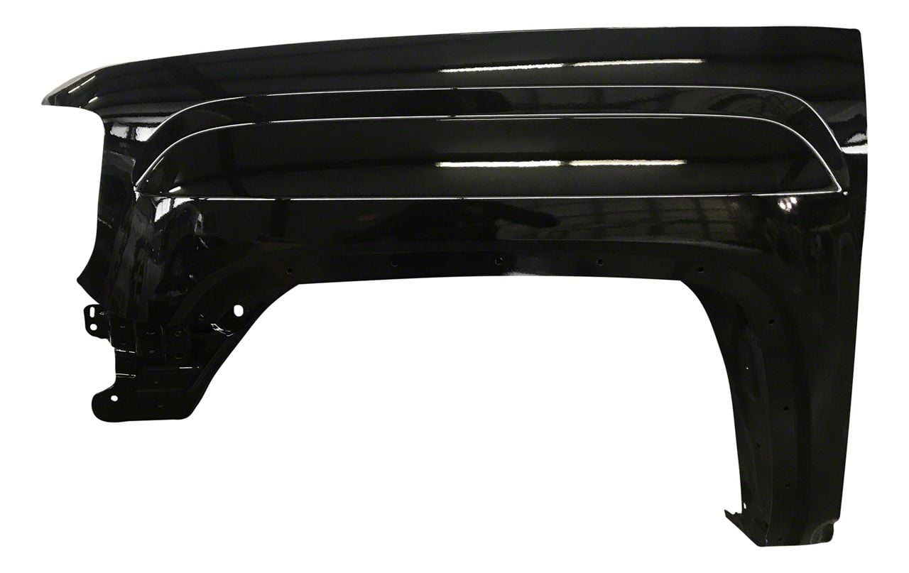 Construction and Appearance. This fender is made from premium-grade steel, making it heavy-duty and impact-resistant. It endures most roadside debris and weather conditions, featuring factory-matched black painting that resists peeling, fading, or cracking.