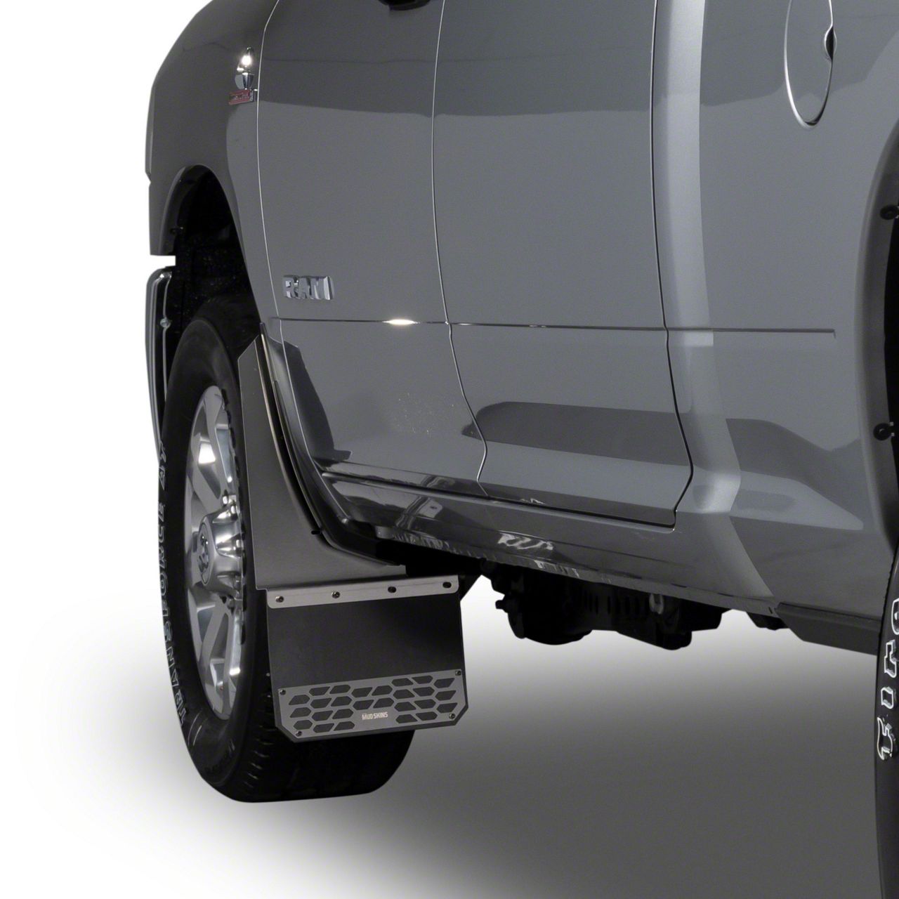 Bold Style and Protection. When shopping around for a pair of mud flaps for your Sierra 2500 HD, you can’t go wrong with these Solid Mud Skins in Brushed Finish for the Front or Rear. Unlike standard one-piece mud flaps, these components feature a specialized two-part design made up of a solid steel mounting area and rubber sails. It also features robust Hex Shield accents on its ends. Combining this feature with the mud guards’ geometric form gives your truck a new look that matches the muscular appearance of your truck. The sails also have a ridged design on the sides facing the tires, which directs splashes downward to further protect your vehicle’s sides from dirt and debris. Moreover, these mud guards come with an offset profile, offering superior clearance for wider tires.
