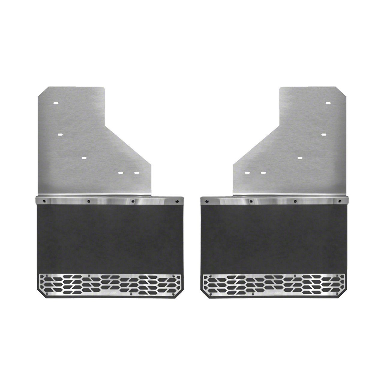 Top-Notch Construction. Crafted from high-quality brushed stainless steel plating, these Solid Mud Skins are designed to hold up well with the daily rigors under all weather conditions. The premium construction maintains its structural integrity even with prolonged exposure to the harsh elements. Moreover, these mud guards were manufactured through advanced technology to ensure a perfect fit with precise contouring for specific vehicle applications.