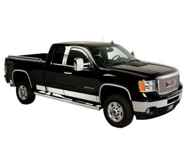 Sleek Protection. Revamp your Sierra 2500 HD Single-Rear Wheel's style and protection with the Putco Stainless Steel Fender Trim (Set of 4). This GM Licensed product is designed to shield your vehicle from debris and door dings, keeping it looking sharp and damage-free. Featuring a pre-installed UV-resistant rubber seal, this fender trim creates a tight and low-profile fit that not only adds a sleek look to your vehicle but also defends against road hazards.