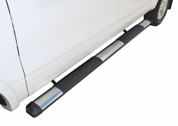 STX400 Series. For a rugged yet minimalistic aluminum step board design, look no further than these STX400 Running Boards; Stainless Steel. In a mirror polished finish, each step board measures 5 inches, extending your cab with sharp- patterned step pads and a high-strength, lightweight extruded aluminum body to withstand all the punishment the off-road has to offer.