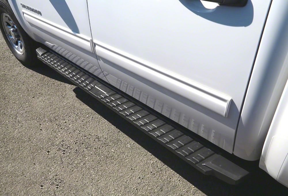 Step Up. A set of T-Style Running Boards are a practical upgrade for your GMC Sierra. These great looking Running Boards furnish a convenient 6.5-inch wide step for easy entry in and out of your 2500 HD Sierra while giving it a clean, yet rugged appearance. As an added bonus, these Running Boards will help to protect your vehicle's body and paint from stones and road debris that get kicked up while driving.
