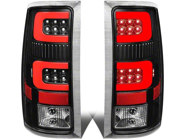 Sleek Styling. Bring back the clean look of your ride and cruise with this Dual C-Bar LED Tail Lights; Black Housing; Clear Lens on your Sierra. Sporting a clean dark look, it offers reliable illumination as well as plug-and-play mounting that makes it an easy upgrade to your vehicle.