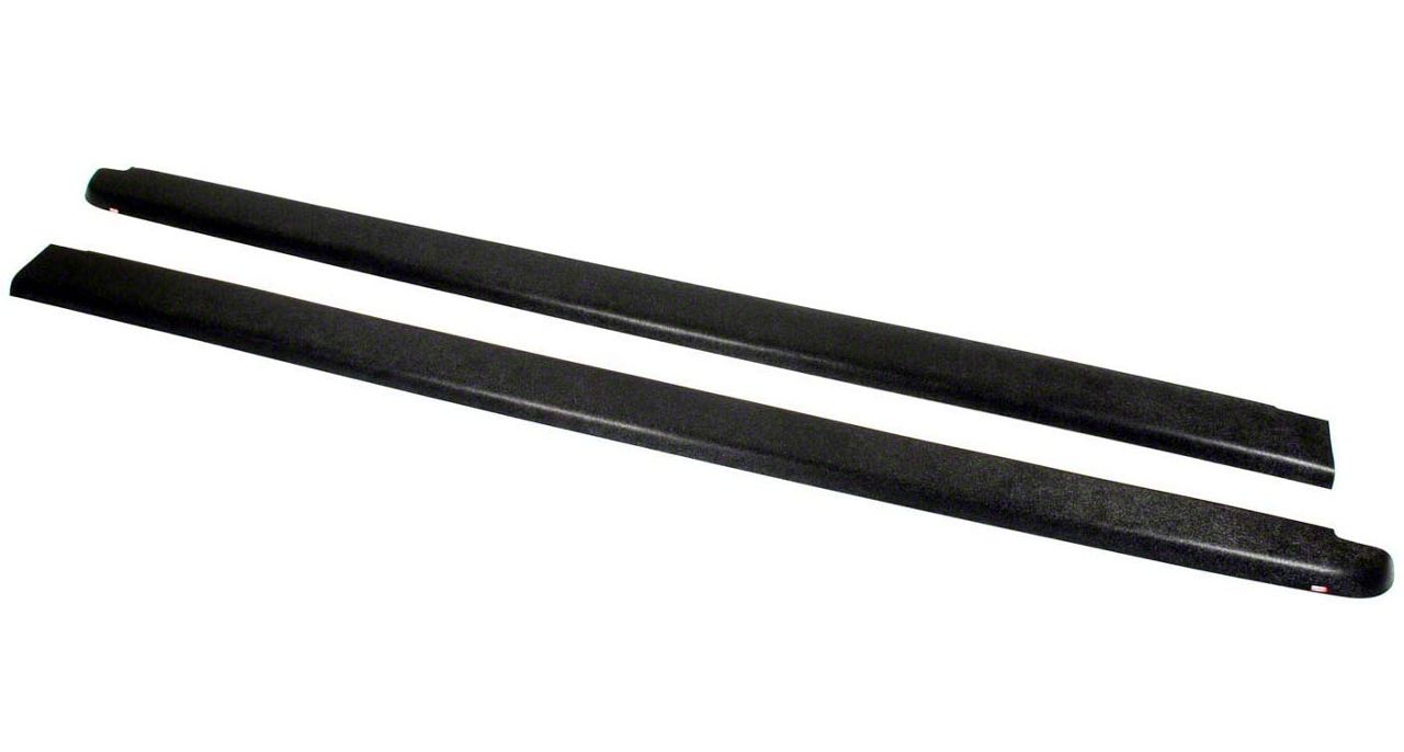 Installation. This truck bed side rail protector uses 3M tape to be installed. Please read these instructions before installation. Before removing red backing from tape, trial fit the bedcap. Take note of proper fit and center the stake pocket holes (if applicable). Apply pressure to top of bed cap to insure that all tape is properly seated. The adhesive requires 48 hours to fully cure. Avoid getting the vehicle wet until 48 hours after installation.