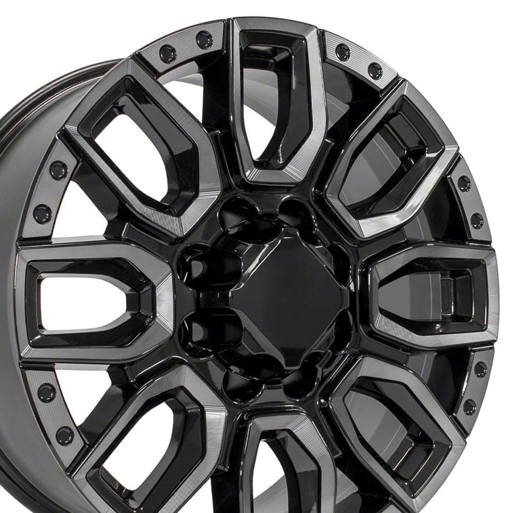 Application. This CV97 Gloss Black Milled with Tinted Clear 8-Lug Wheel; 20x8.5; 12mm Offset, with a backspace of 5.222 Inch, 132.6mm; and bolt pattern of 8 x 165.1mm (8 x 6.5-Inch), is designed to fit 2001–2006 Sierra 3500 HD SRW models. Sold individually.