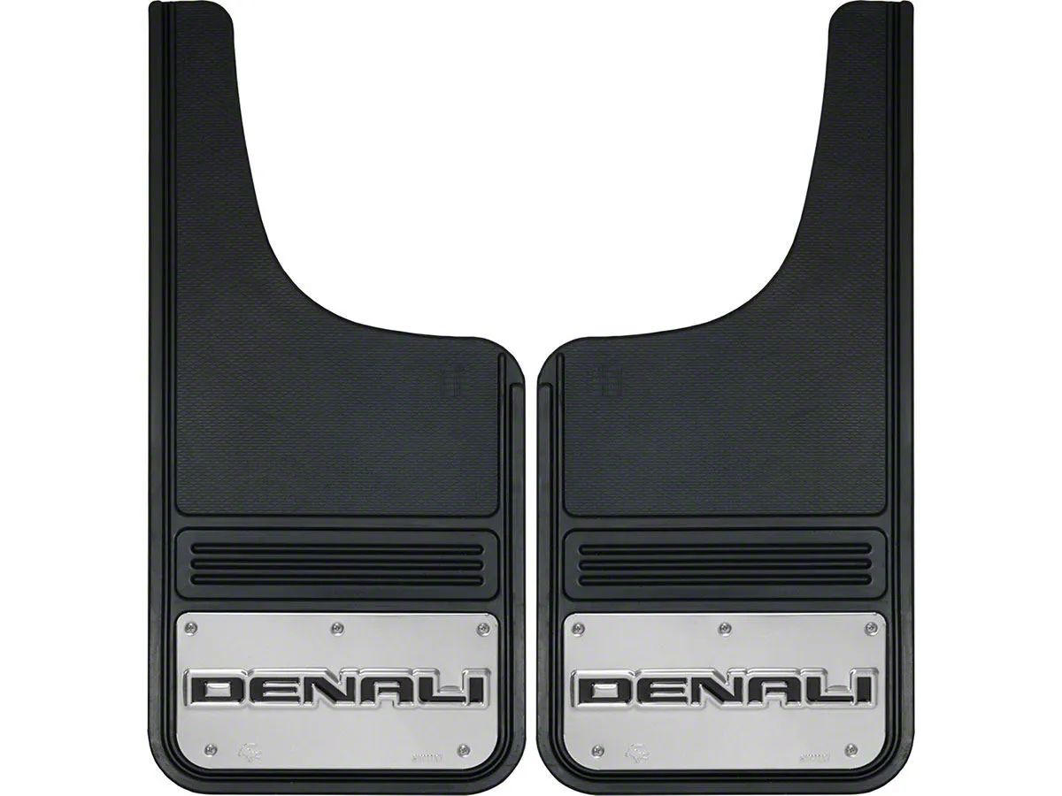 Premium Mud Flaps. The 12-Inch x 23-Inch Mud Flaps with Denali Logo are designed to provide superior protection for your vehicle while adding a touch of style. These top-grade mud flaps are compatible with either the front or rear position, ensuring versatile use and optimal coverage.