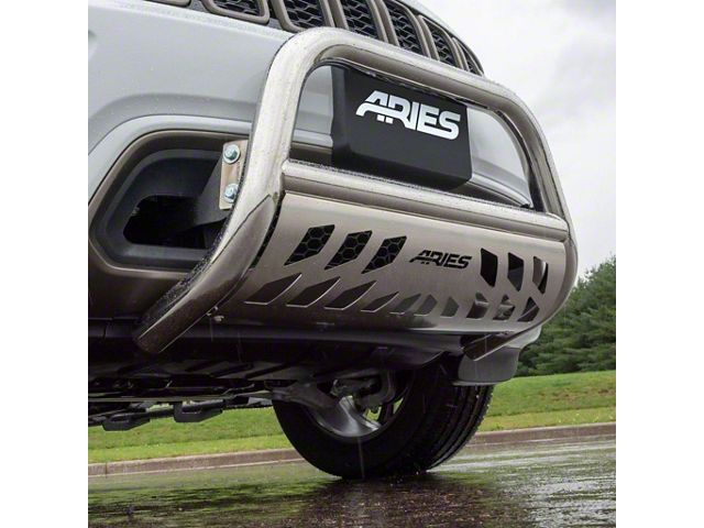 Description. The ARIES 3" bull bar is made for those who face the uncertain road without fear. It features a vehicle-specific design for a custom fit, a pre-drilled crossbar for mounting LED lights and a durable construction to complement the look of your truck or SUV. This model is made with 304 stainless steel for maximum rust resistance and has a polished finish for a bright, clean accent.