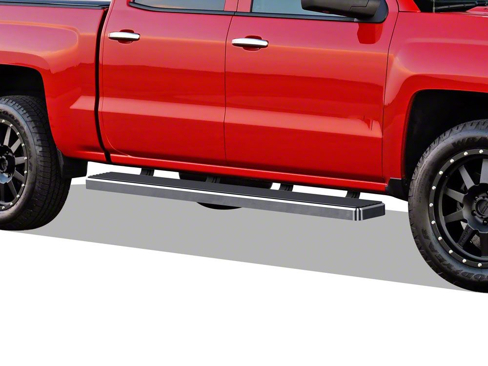 Secure, Durable, and Stylish. Maximize your Sierra's functionality while giving it a refined styling with these 6-Inch iStep Hairline Silver Running Boards. The cab-length step boards are furnished with anti-slip rubber treads with horizontal channels to help shed mud, snow, and water for an all-weather traction. These iPhone-inspired running boards are also useful for reaching your truck’s roof area and utility racks.
