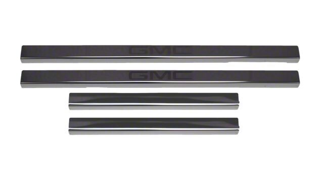 Construction and Appearance. These Putco Black Platinum Door Sills, which come in a set of 4, have been constructed from 26-gauge black platinum 304 stainless steel, which is strong and tough. The sills are black, so they match any color. They come etched with "GMC" so you can show your love.