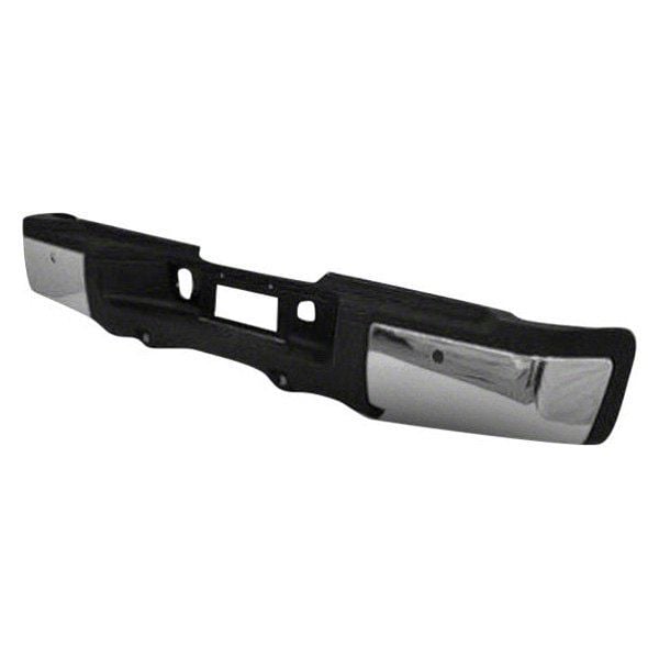 Full Assembly. As opposed to piecing together every individual component to construct a new rear bumper, this Replacement Rear Bumper comes with chrome bumper ends, supporting brackets, and the plastic step pad for a straightforward ordering process and a simple installation consisting of entirely new components.