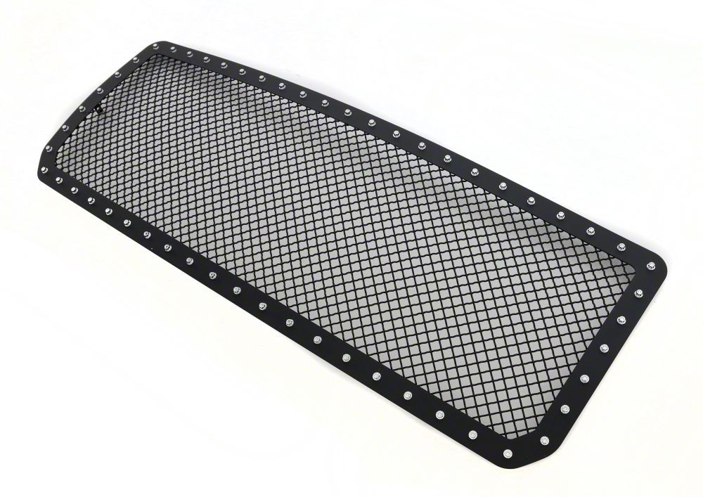 Construction and Appearance. This Upper Grille Insert is built from 304 stainless steel with a wire mesh grille in a rivet style. It comes in 1 piece and is finished in a black powder coat. The emblem is not included and all emblems are reused from the OE assembly.