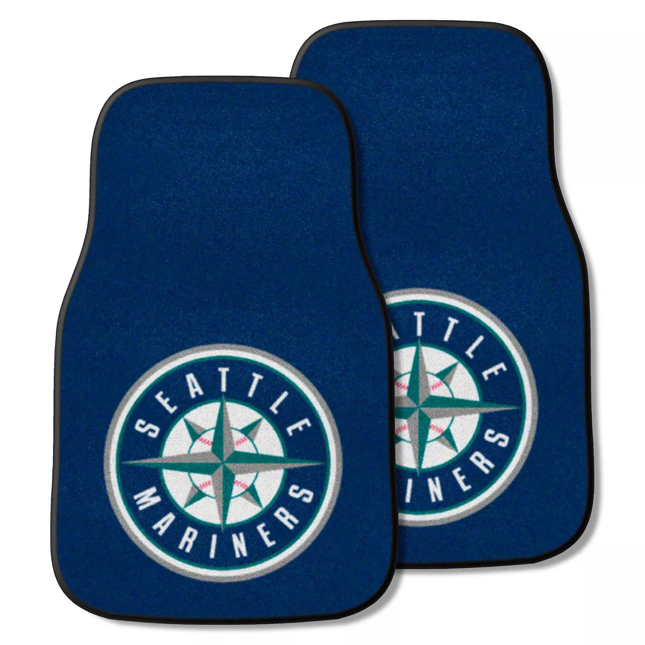 Carpet Front Floor Mats with Seattle Mariners Logo (Universal; Some Adaptation May Be Required)