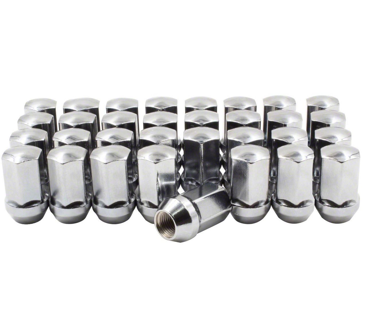Enhanced Appeal and Performance. Upgrade your GMC Sierra 3500 HD SRW with the Chrome OEM Style Lug Nut Kit (Set of 32). This kit not only enhances the aesthetic appeal of your wheels but also improves the stability and security of your vehicle. Each lug nut in the 32-piece set is crafted from 1008 carbon steel and heat-treated for durability and strength. The striking chrome finish adds a touch of elegance to your GMC Sierra 3500 HD SRW, while its resistance to rust and corrosion ensures long-lasting shine and reliability.