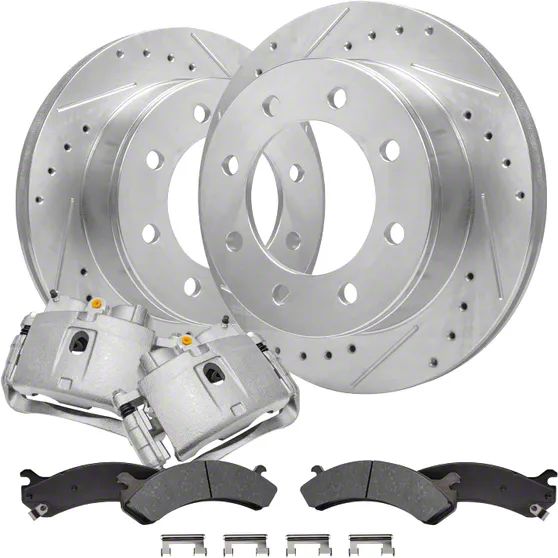 Drilled and Slotted 8-Lug Brake Rotor, Pad and Caliper Kit; Front (07-10 Sierra 3500 HD SRW)Find parts that fit my vehicle