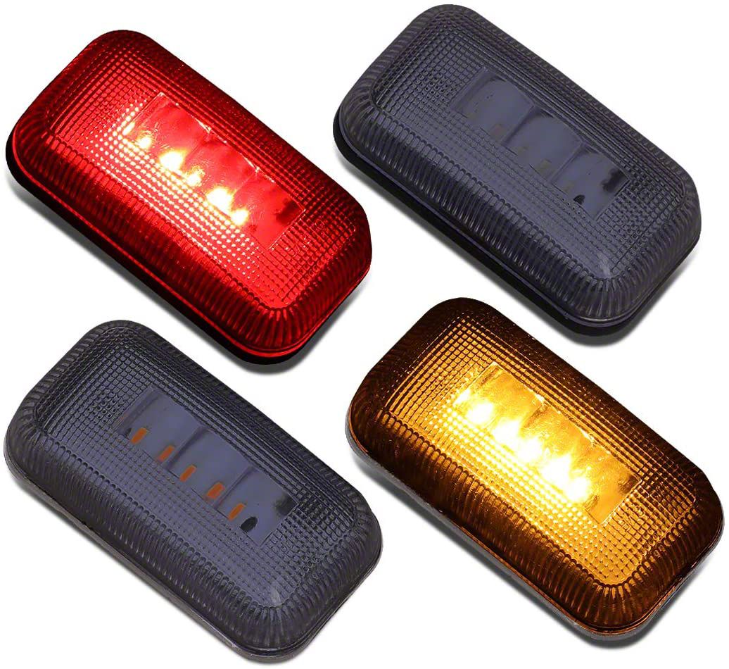 Construction and Appearance. These Side Marker Lights have smoked lenses with red and amber LEDs.
