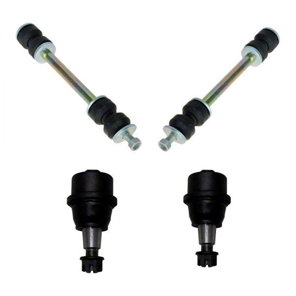 Other Features. This set includes 2 lower ball joints and 2 sway bar links, providing all the necessary parts for a comprehensive front suspension upgrade. The OE compatible and comparable design ensures seamless integration with your vehicle's existing suspension system. The direct replacement feature eliminates the need for modifications, making the installation process straightforward and efficient.