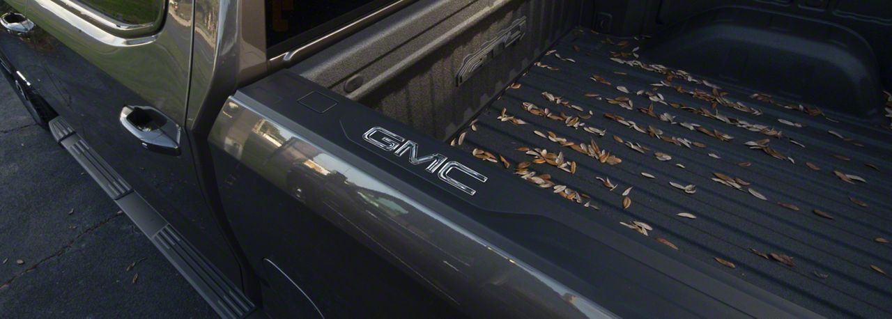 Style and Loyalty. Proudly display your GMC loyalty with some stylish GMC Bed Rail Letter Inserts; Liquid Chrome. Officially licensed by GM, this 6-piece set adds some striking appearance details to your truck's bed rail.