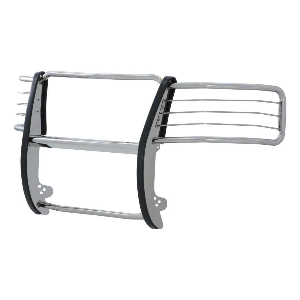 Description. For the conqueror in every truck, Jeep or SUV owner, the ARIES grille guard offers the tough, trail-ready look you demand. It begins with a one-piece frame of 1/4" thick welded plates and 1-1/2" mandrel-bent tubing for a solid build. Each one is made with a vehicle-specific design for a better fit, easier install and more secure mounting. The side brush guards are custom-bent to contour to the profile of your vehicle, while the mounting brackets are positioned for a no-drill application. This means pre-existing factory holes are used to ensure optimum fitment and less vibration. This particular custom grille guard fits specific years of the Chevy Silverado 2500 HD and 3500 HD (see application info to verify). The ARIES grille guard also makes it easy to customize the look of your vehicle. Not only does the crossbar have two pre-drilled holes for mounting aftermarket LED lights, but many of our grille guards are also available in two finish options -- polished stainless steel or semi-gloss black steel. The stainless steel grille guard is made with 304 stainless, being high in nickel content and truly resistant to rust and corrosion. This option comes with a mirror-like polished finish for a definitive shine. The semi-gloss black grille guard is made with high-strength carbon steel for added strength. It features a tough black powder coat finish to protect against rust, scratches and the elements. All ARIES grille guards also come with rubber stripping along the risers to protect the frame against scuffs and scratches.