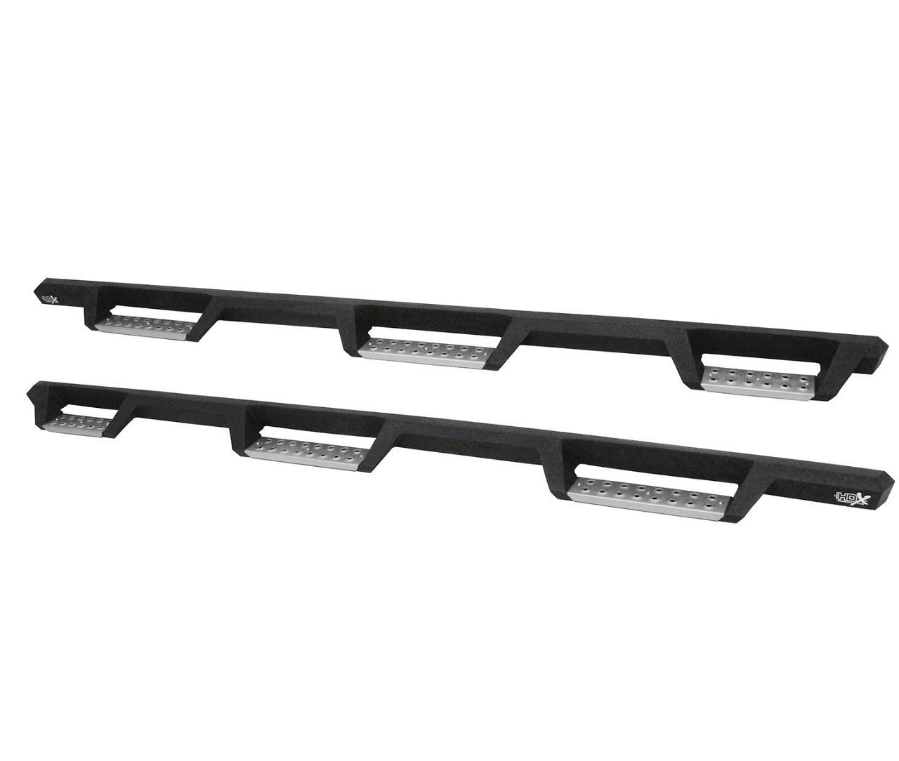 Easier Vehicle Access. Installing a set of HDX Wheel-to-Wheel Drop Nerf Side Step Bars makes getting in and out of your 2007-2019 GMC Sierra 3500 HD Crew Cab SRW with Long Box much easier. Compared to other side step bars, these HDX Nerf Bars with their unique drop step design offer more flexibility when entering your Sierra. While the convenient third step allows for easier access to your truck's bed.
