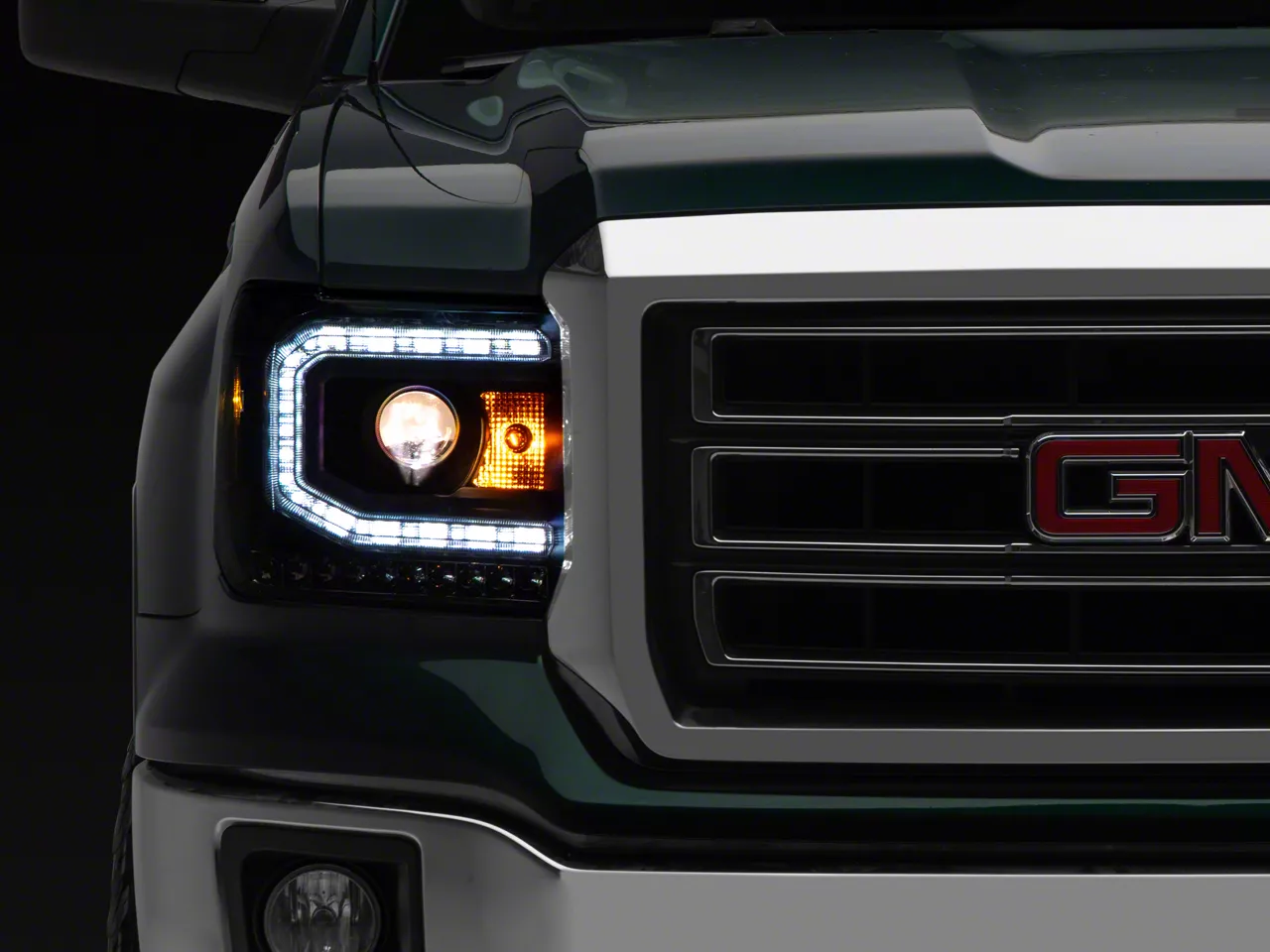 Modern Styling. A pair of black LED DRL Projector Headlights are an excellent way to add an updated modern appearance to your 3500 Sierra, all while improving your nighttime visibility. With an impressive DRL Light Bar design and sequential LED turn signals, these Headlights will give your Sierra a whole new look.