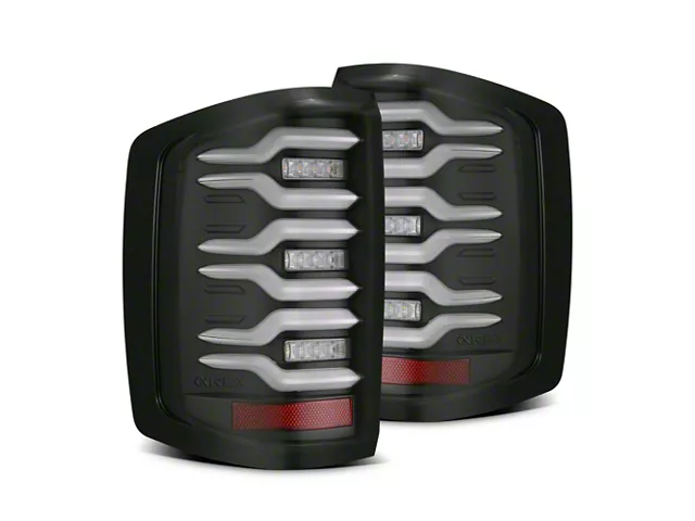 Brilliant Replacement. Enhance the appearance and functionality of your Silverado 1500 with the LUXX-Series LED Tail Lights. These brilliant replacements for factory halogen tail lights feature a sleek polypropylene black housing, paired with a durable polycarbonate clear lens. Integrated with three pairs of switchable LED tubes, these tail lights offer red LEDs for parking and brake lights, as well as amber LEDs for sequential turn signal lights, ensuring maximum visibility and safety on the road.