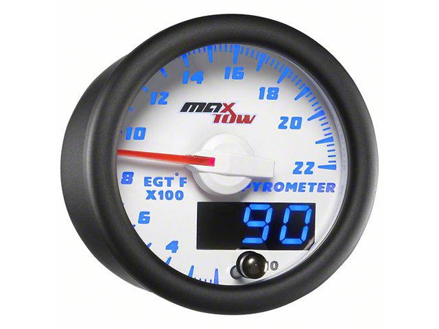 Description. MaxTow’s White Double Vision™ Series 2200° F Exhaust Gas Temperature Gauge is electronically driven truck gauge that includes a type K thermocouple EGT probe that reads and displays your truck’s exhaust gas temperature from 200° to 2200° Fahrenheit with unmatched accuracy.