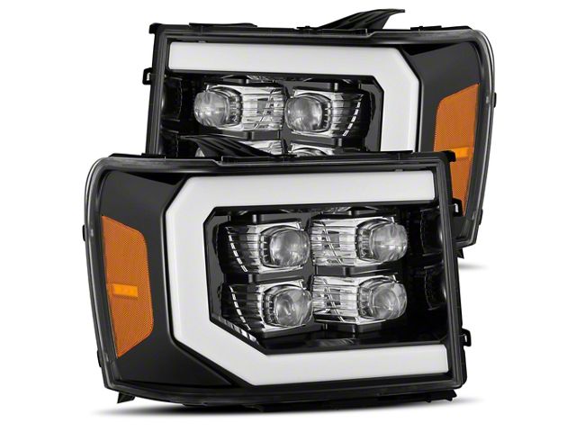 Bright Lighting. If you are looking for a more effective way to light your roads, this NOVA-Series LED Projector Headlights (Jet Black Housing, Clear Lens) will pair great with your Sierra. Sporting a white DRL bar, it adds a robust retro feel to the face of your car while also providing top-quality illumination without the excess power-draw thanks to its innovative LED bulbs.