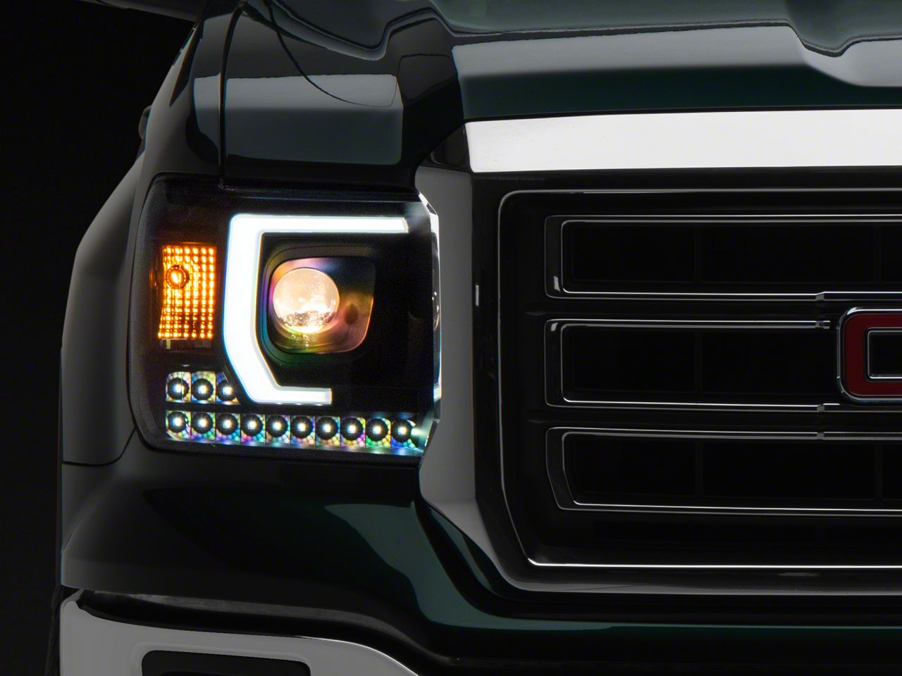 Updated Modern Styling. An excellent way to add a modern appearance to your GMC Sierra is by installing a pair of black Plank Style Projector Headlights. With an impressive design, these Headlights flow nicely with your Sierra's front end for an updated look.