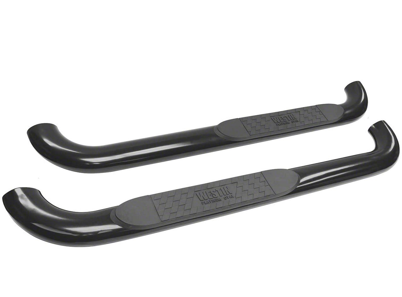Rugged Construction. These Platinum Side Step Bars are manufactured from 4-inch diameter oval steel tubing for superior strength. These Side Step Bars are then completed in a black powder coated finish for good looks and long lasting corrosion resistance. As part of the final assembly a set of rugged non-slip step pads are installed.