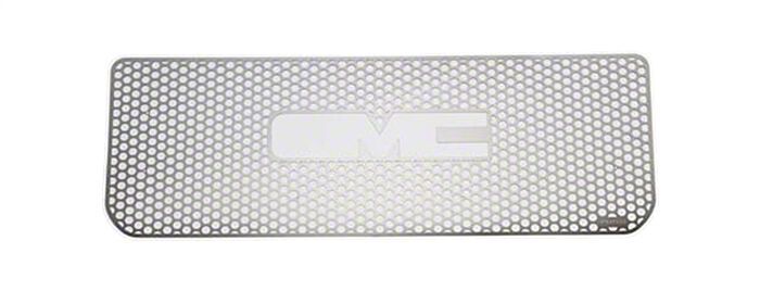 New Look. This Putco Punch Design Upper Overlay Grille; Polished will put a new face on your Sierra 3500 HD. It goes on over your factory grille, but once it does, it will look sensational and add some armor in defense of your engine bay.