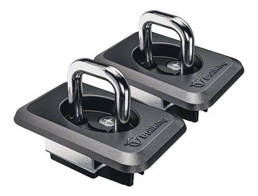 Bull Rings are the premium tie-down anchor point for your truck. While the stock anchors points are inside the bed where it’s hard to reach, Bull Ring's retractable anchor points easily install into the stake pockets on top of your bed rails. Simply pop the stainless steel ring up when you want to use it to secure a load, then hit it down flush when you don’t. Each is made from stainless steel for a 1000 lbs capacity, matches the exact grain and color of Ford & Dodge railcaps, and comes with our "no bull" Lifetime Warranty. Bull Ring's stainless steel tie down anchors are an essential truck bed accessory. Sold as a set of two tie-down anchors.