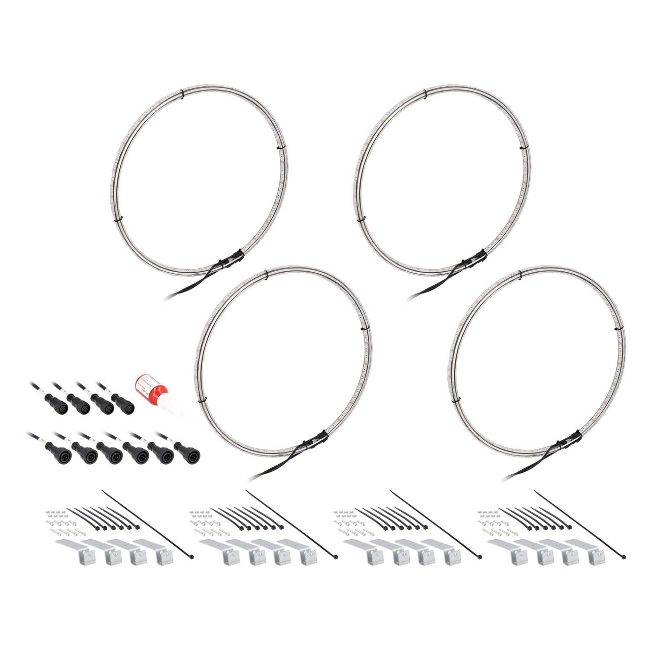 Description. (4) Durable anodized aluminum wheel rings. RGB + true white LEDs. Double sided LED strips that will vibrantly light up the vehicles wheels. (3) Sizes available: 14” , 15.5” , 17”. Mounts to OE disc brake shield. Uses Metra RGBW-CB1 (Sold Separately). All anodized aluminum and stainless-steel hardware included for a long-lasting installation. Thread locking adhesive included for a worry-free installation. Water-resistant Heise connectors