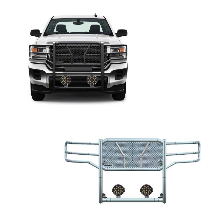Enhanced Front Protection. The Rugged Heavy Duty Grille Guard with 7-Inch Black Round LED Lights offers superior front-end protection with a patented design and custom-punched center grille. It's tailored specifically to enhance the appearance and safety of your Sierra 3500 HD while driving.