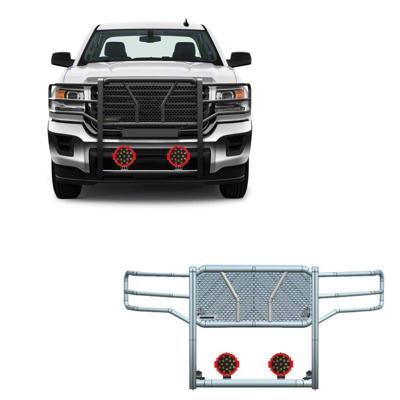 Installation. Putting this Rugged Heavy Duty Grille Guard with 7-Inch Red Round Flood LED Lights on your GMC Sierra 3500 HD is easy and requires no drilling.
