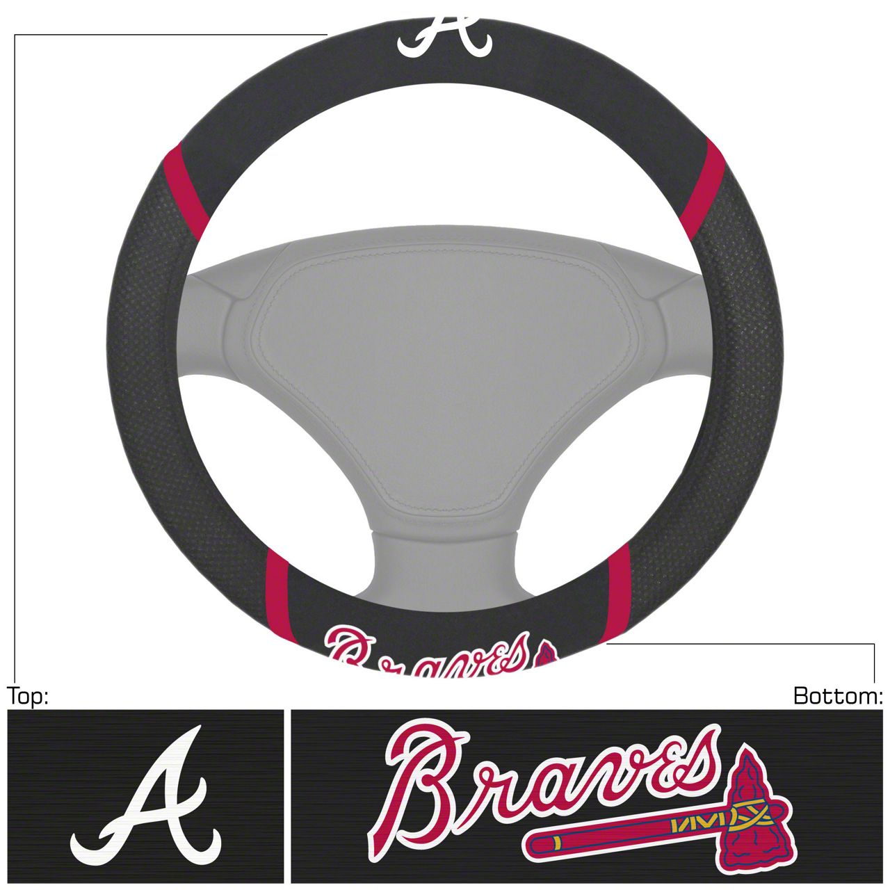Application. The Steering Wheel Cover with Atlanta Braves Logo offers universal fitment.