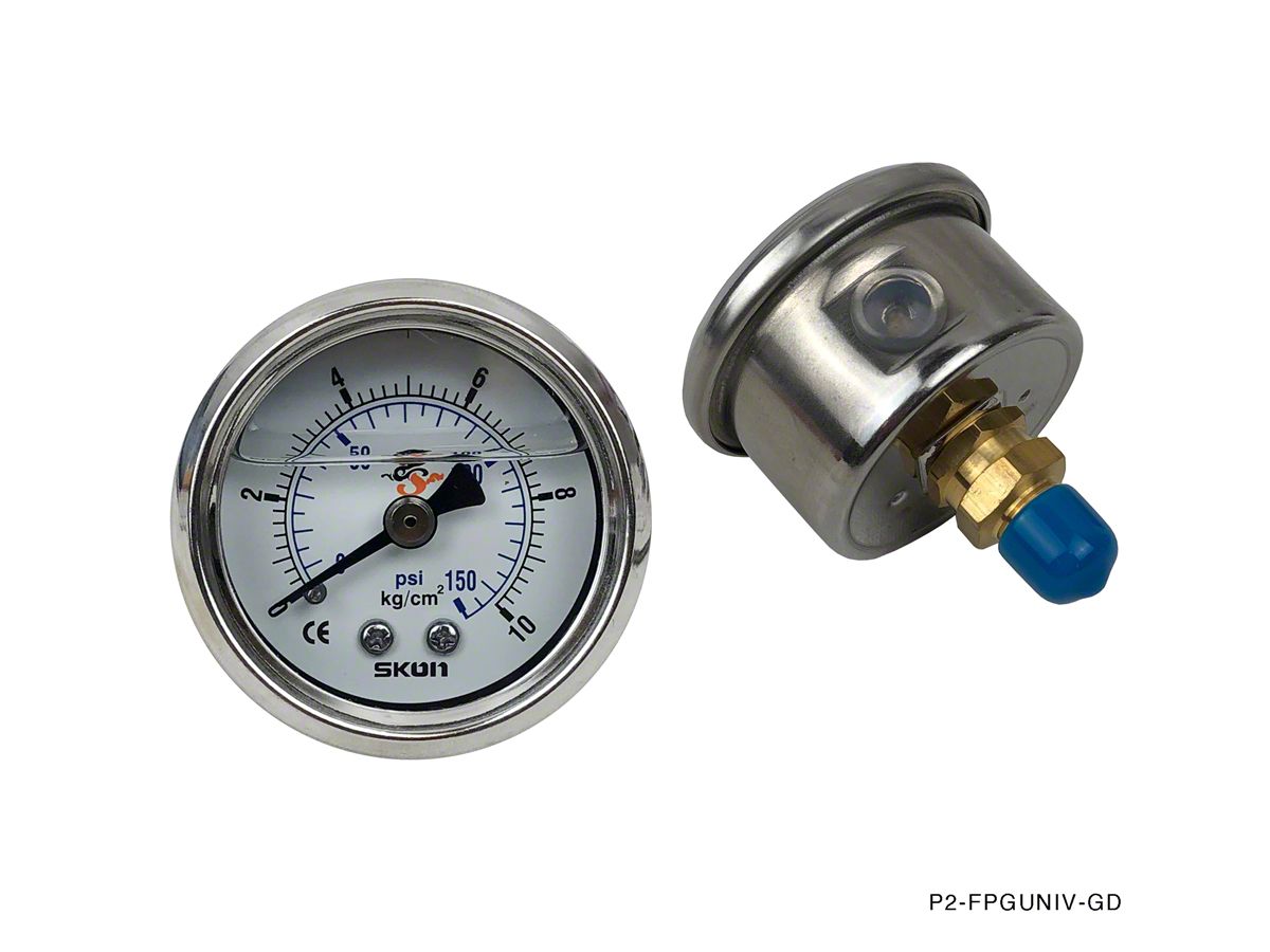 P2M universal liquid filled fuel pressure gauge can be installed on aftermarket fuel pressure regulator or fuel rail kits that takes 1/8 NPT threads. Having a fuel pressure gauge is vital in adjusting base fuel pressure, tuning purpose or fuel system troubleshooting.