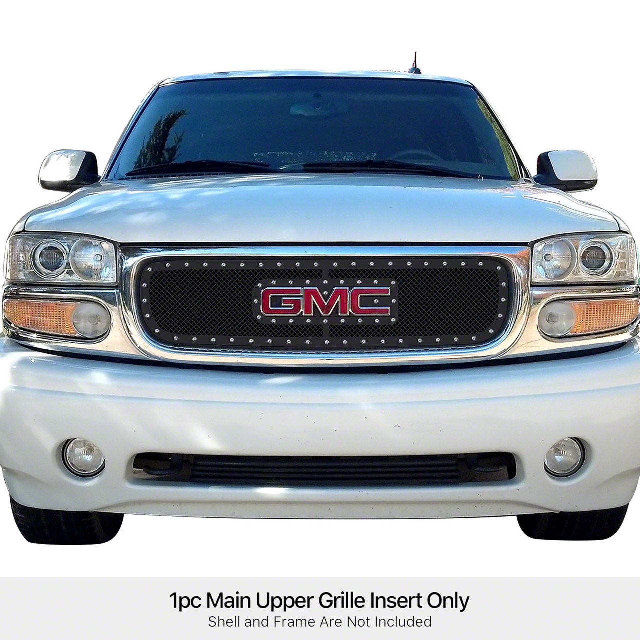 Wire Mesh Rivet Style Upper Overlay Grille with Logo Cutout; Black (01-02 Sierra 3500 HD)Find parts that fit my vehicle