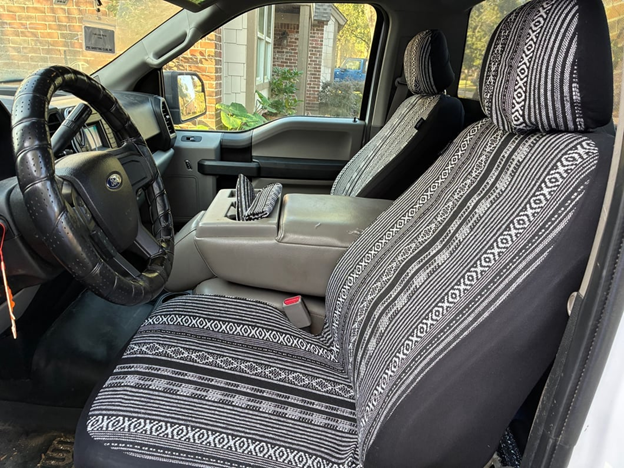 Do you want to change the way your entire cabin feels and go with more of a classic off-road Baja style? If so, these Baja Saddle Blanket seat covers are always a great choice. These seat covers are made with polyester, but they also have a high-density foam core. This makes these seat covers stylish, comfortable, and a great eye-catching upgrade for your Ford truck. We also love these seat covers because they're universal. In other words, you don't have to worry about getting a specific cover for a specific model or seat size. Instead, you can slap these bad boys on just about any seat.