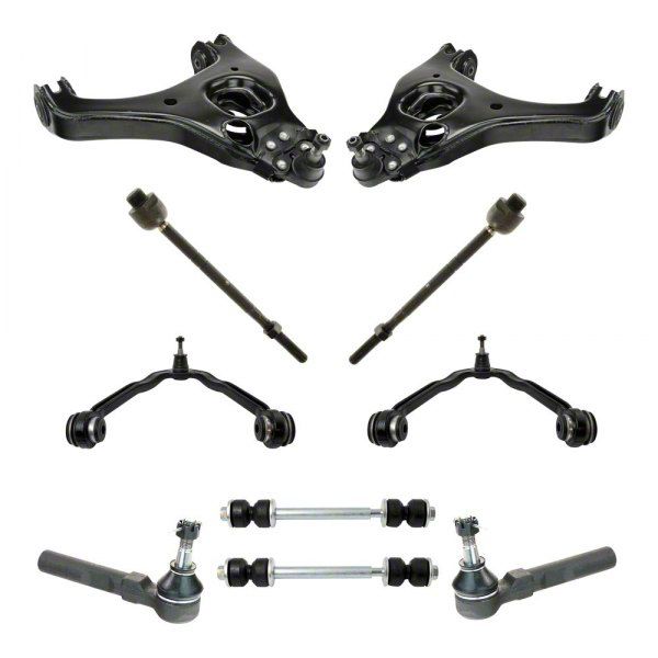 Complete Suspension Solution. The 10-Piece Steering and Suspension Kit provides all essential front end components to restore proper steering and suspension function. It replaces worn or damaged parts to improve road handling, vehicle stability, and safety.