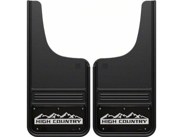 Heavy Duty. Made for a universal fit, these Mud Flaps come in pairs and are sized 12 by 26 inches with a matte black finish. Built from heavy-duty rubber with a 10 1/4 by 5-inch steel plate, these mud flaps are made for front or rear use and are a great protective upgrade to your ride that prevents mud, rocks, and other road debris from denting, scratching, or doing other minor damage to your ride.