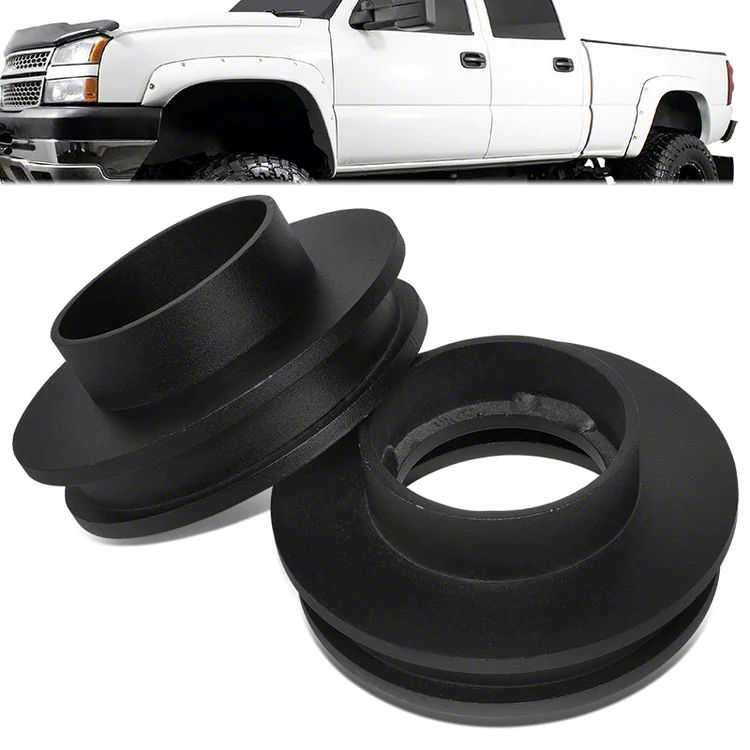 New Stance with Same Ride Quality. The 2-1/2-Inch Front Leveling Kit in Black is the perfect solution if your Silverado needs a front lift to level out its stance. The 2-1/2-inch lift height gives your truck a more aggressive look and improved ground clearance. The kit also maintains the factory ride quality and will not compromise your vehicle's handling or performance.