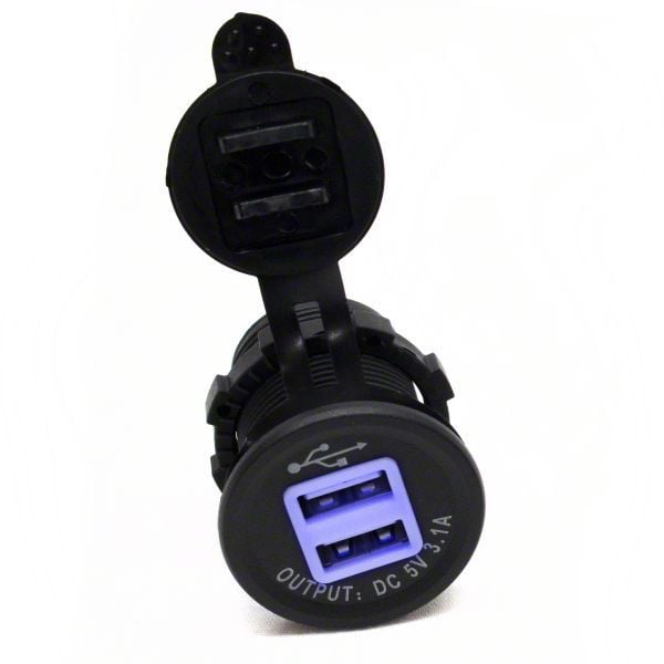 Reliable Powering. Ride comfortably in your car with this 2-Port USB Socket. Built tough, this assembly is precision machined to withstand daily use as well as offer reliable toughness that can handle 12V accessories and tools such as lights and chargers for small mobile devices.